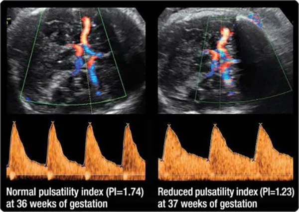Đồng thời thông qua hình thức siêu âm này có thể nhận diện thai nhi tăng trưởng chậm khởi phát sớm (trước 34 tuần).