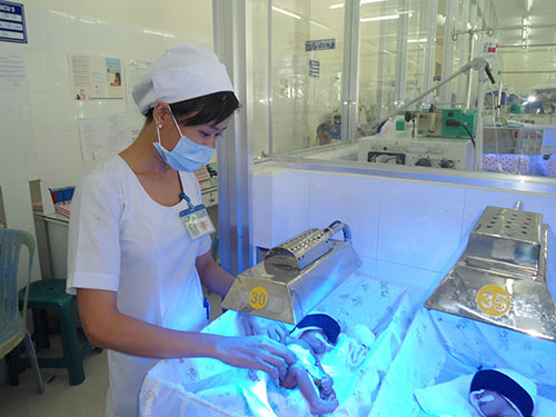 Trẻ sinh non tháng chiếu đèn tại Bệnh viện Từ Dũ